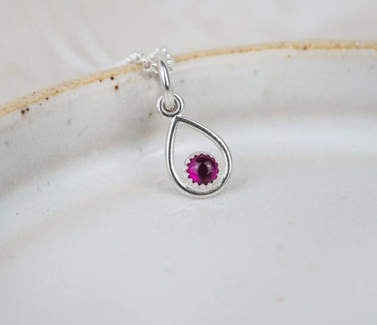 Sterling Silver Teardrop Pendant with Semi Precious Birthstone