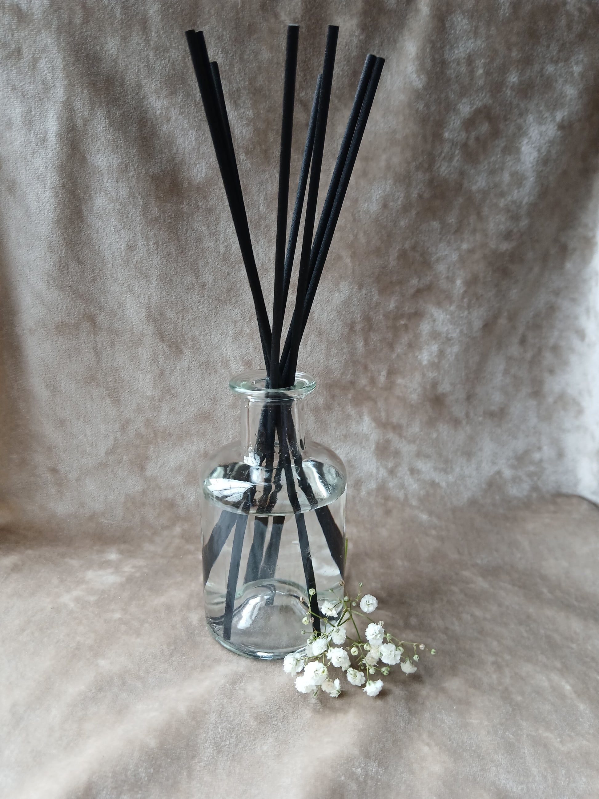 This slightly larger, gorgeous reed diffuser has an apothecary bottle shape, making it a truly modern piece. It has been designed for optimum performance. It is the perfect gift for design lovers, with its vintage apothecary look, It is made from high quality clear glass, it really is a lovely piece. The diffuser base is infused with high quality essential oils/fragrance oils. The diffuser comes sealed with a silver or beige plug, 8 x sturdy black fibre reeds, which will compliment your diffuser beautifully, plus the scent throw lasts approximately 12 weeks. All diffusers come in a draw string hessian bag, with a safety care card. All diffusers and reeds are carefully packaged using as much eco friendly and biodegradable packaging as I can. This includes kraft gift boxes wood wool/shredded paper and beautifully completed with a sprinkle of dried flower petals, then wrapped with an organza/paper bow, giving your parcel a timeless and rustic feel.