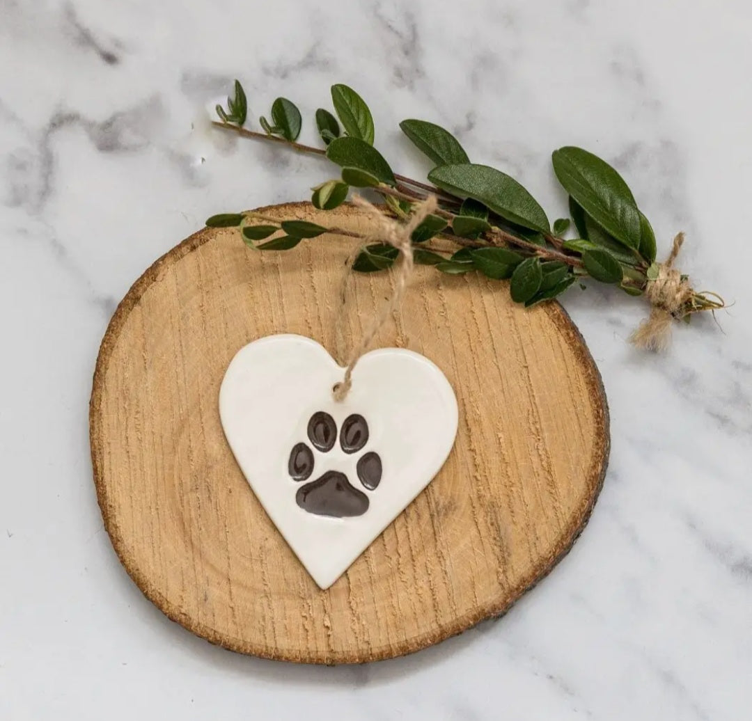 A gorgeous little keepsake tag for that very special dog lover. Each heart measures 7.5cm x 6.5cm and is made by hand in a workshop where they make, bisque fire, glaze and kiln fire each item, the process takes approximately 10 working days.