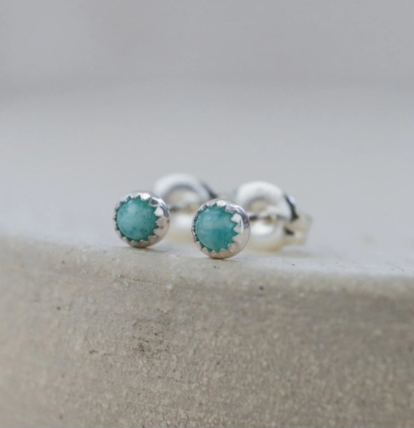 Sterling Silver Mini Stud Semi Precious Stone Amazonite Earrings