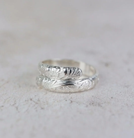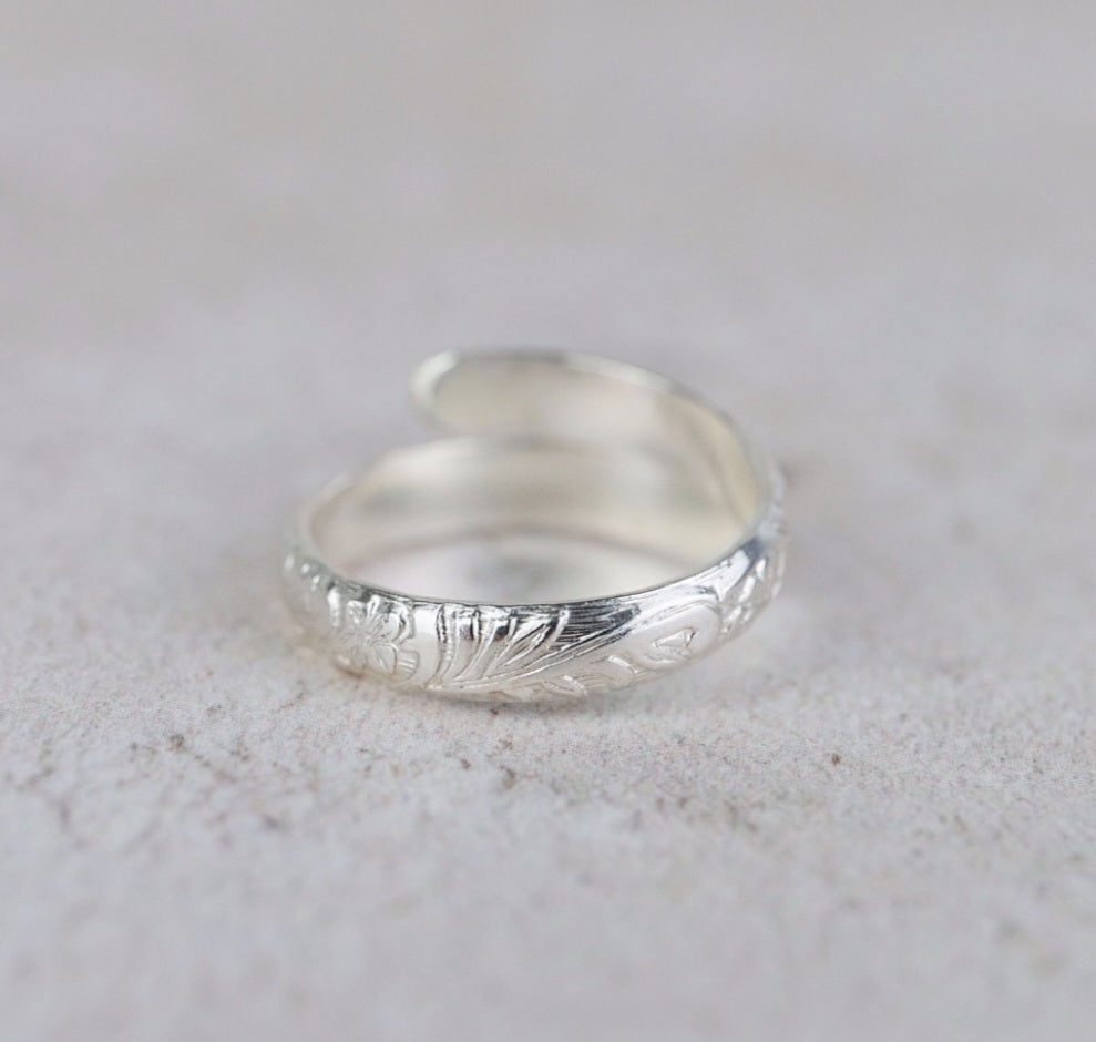 A gorgeous, handmade Sterling Silver wrap around thumb ring with a delicate floral texture to the front. It has been designed as adjustable, one size fits all! Each thumb ring is approximately 60mm in length and approximately 20mm across.