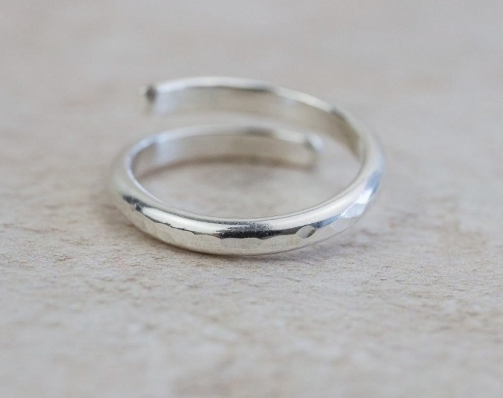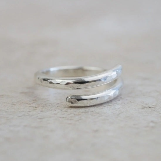 A handmade Sterling Silver wrap around thumb ring with a delicate hammered texture to the front. Designed as adjustable, one size fits all. Each thumb ring is approximately 60mm in length and approximately 20mm across.